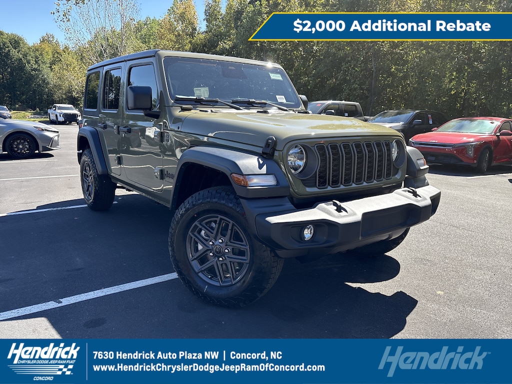 *New 2026 Jeep Wrangler Sport S stock #T400089, $399/mo, 39 month lease, 10,000 miles/year, $399 down payment. With Approved Credit. Plus tax, tag, dealer installed accessories and dealer fees. See dealer for details. Must finance through Stellantis Financial Services and qualify for all applicable rebates including loyalty. Must take retail delivery by 03/02/26.