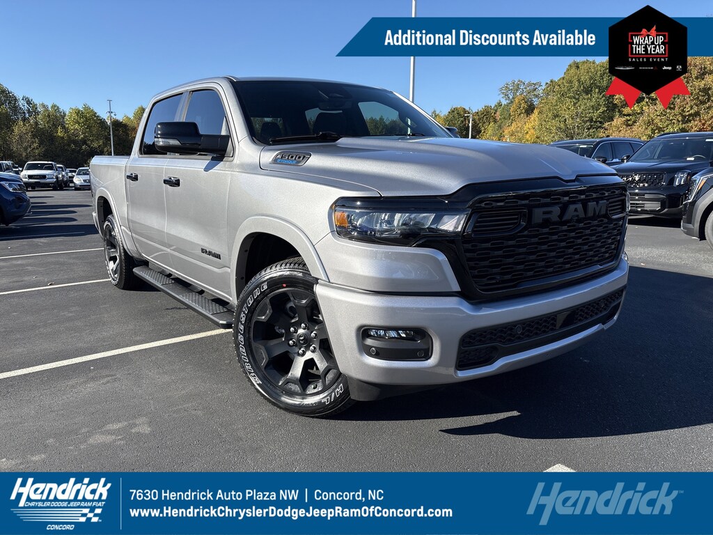 *Offer includes all dealer discounts and OEM incentives. Offer does not include tax, tag, title, fees, and other dealer installed options. Discount varies by model and stock number. Example stock #S29395. See dealer for details. Take retail delivery by 01/05/26. **0% APR financing for 72 months equals $13.89 per month per $1,000 financed for well-qualified buyers through Stellantis Financial Services regardless of down payment. Not all buyers will qualify. Not compatible with any other incentive programs or offers. Residency restrictions apply. Example Vehicle: 2025 Ram 1500 LD DT Big Horn. Contact dealer for details. Must take delivery by 01/05/26.