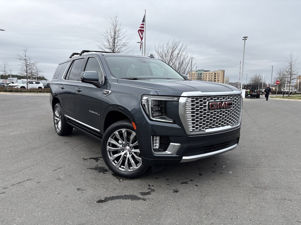 WHEELS, 22 X 9 (55.9 CM X 22.9 CM) BRIGHT MACHINED ALUMINUM WITH PREMIUM PAINT Includes (SFE) wheel locks, LPO.), ASSIST STEPS, POWER-RETRACTABLE WITH PERIMETER LIGHTING, SUNROOF, POWER PANORAMIC, DUAL-PANE tilt-sliding with express-open and close and power sunshade, LPO, BLACK ROOF RACK CROSS RAILS (DEALER-INSTALLED), LPO, CARGO SECURITY SHADE (dealer-installed), AUDIO SYSTEM, 10.2 DIAGONAL GMC INFOTAINMENT SYSTEM WITH NAVIGATION includes multi-touch display, AM/FM/SiriusXM stereo, Bluetooth® streaming audio for music and most phones, Android Auto® and Apple CarPlay® capability for compatible phones, advanced voice recognition, in-vehicle apps, personalized profiles for infotainment and vehicle settings (STD), ENGINE, 6.2L ECOTEC3 V8 with Dynamic Fuel Management, Direct Injection and Variable Valve Timing, includes aluminum block construction (420 hp [313 kW] @ 5600 rpm, 460 lb-ft of torque [624 Nm] @ 4100 rpm) (STD), TRANSMISSION, 10-SPEED AUTOMATIC electronically controlled with overdrive, includes Traction Select System including tow/haul (Most vehicles built on or after 6-7-2021 with a V8 engine will have (NSS) Not Equipped with Automatic Stop/Start, which removes Automatic Stop/Start, Engine control stop/start disable button and its content.) (STD). GMC Denali with Dark Sky Metallic exterior and Teak/Light Shale interior features a 8 Cylinder Engine with 420 HP at 5600 RPM*.